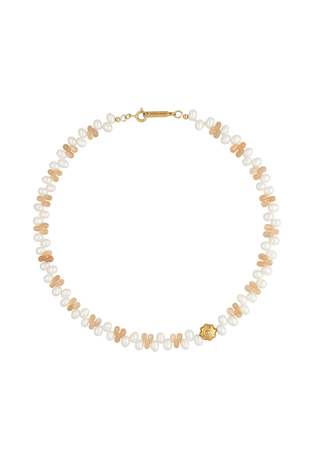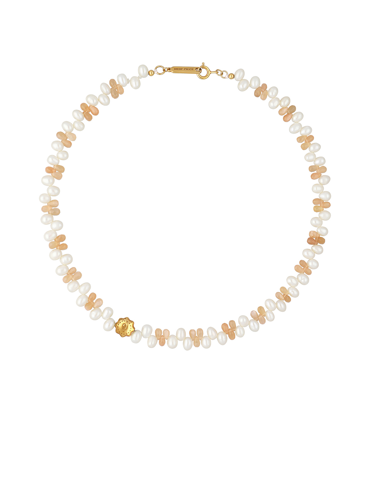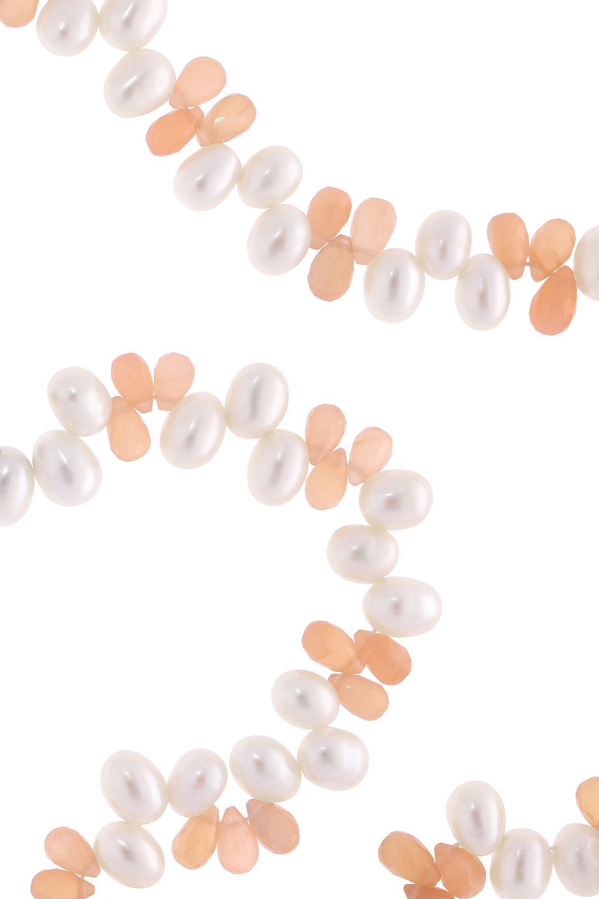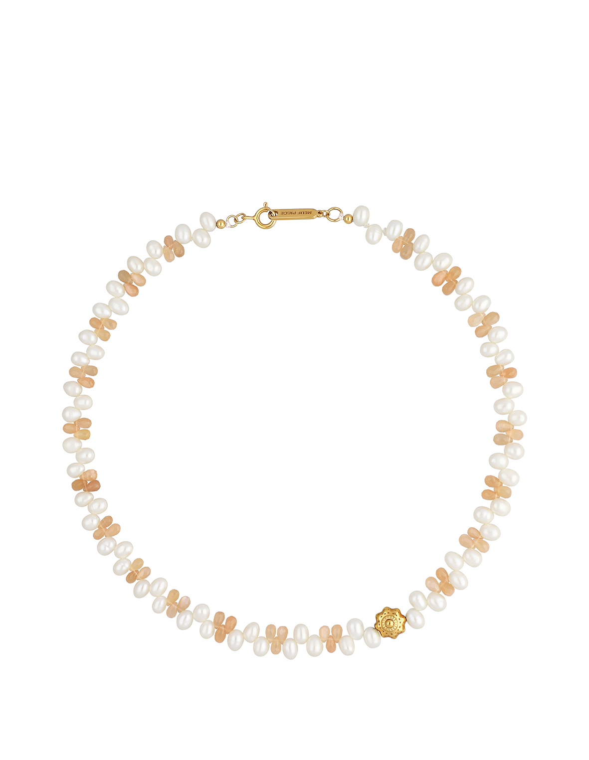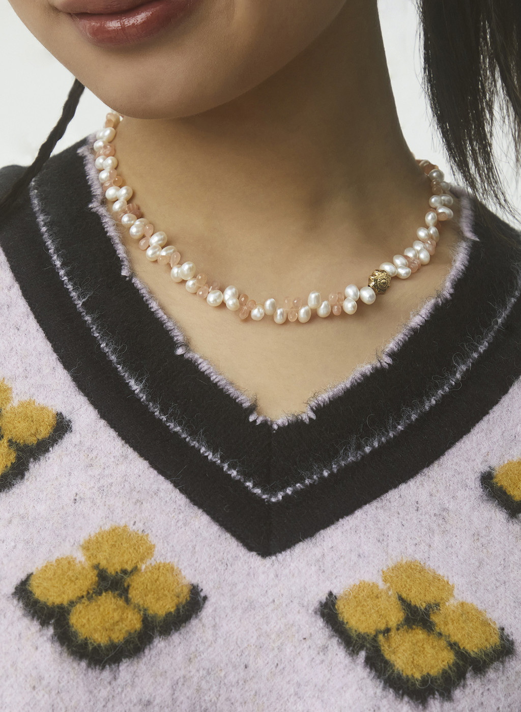 담수 진주와 피치 문스톤의 배열이 감각적인 아이템입니다.